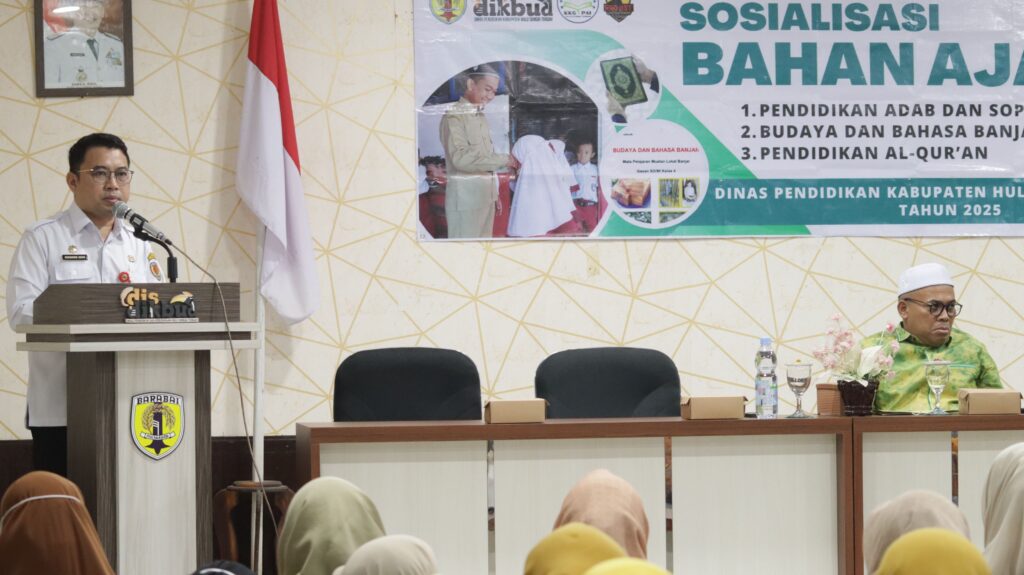 Kalsepopuler.id BARABAI – Pemerintah Kabupaten Hulu Sungai Tengah (HST) melalui Dinas Pendidikan melaksanakan kegiatan Sosialisasi Bahan Ajar Pendidikan Adab & Sopan Santun, Budaya Bahasa Banjar, dan Pendidikan Al-Qur’an, di Aula Sibli Imansyah Dinas Pendidikan Kabupaten HST, Rabu (9/7/2025).